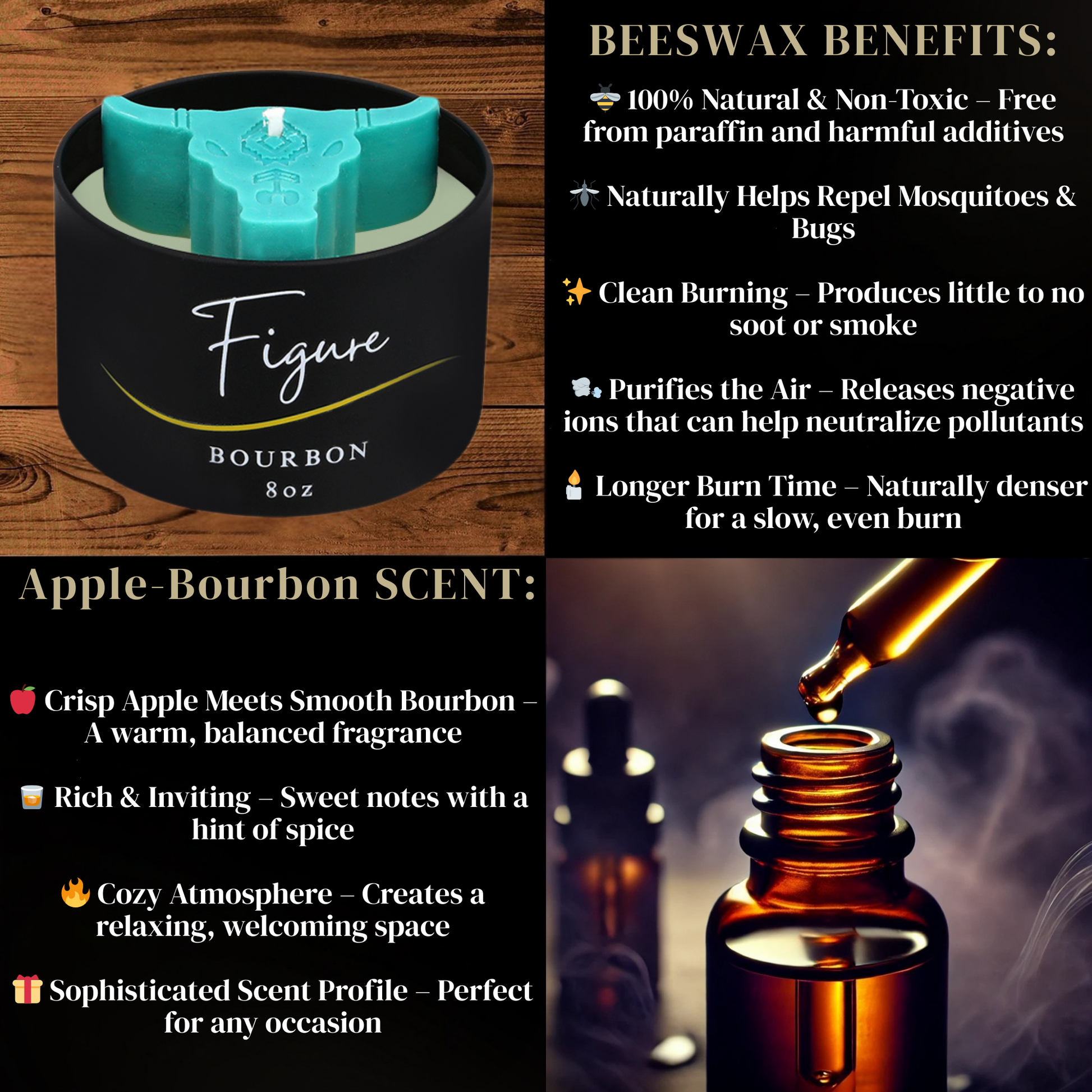 Crafted from a premium beeswax and organic soy wax blend, each candle features a 100% beeswax wick for a clean, even burn. Choose from our full range of scents—Lavender, Eucalyptus, Bourbon, or Coffee Bean—to match any mood or season.