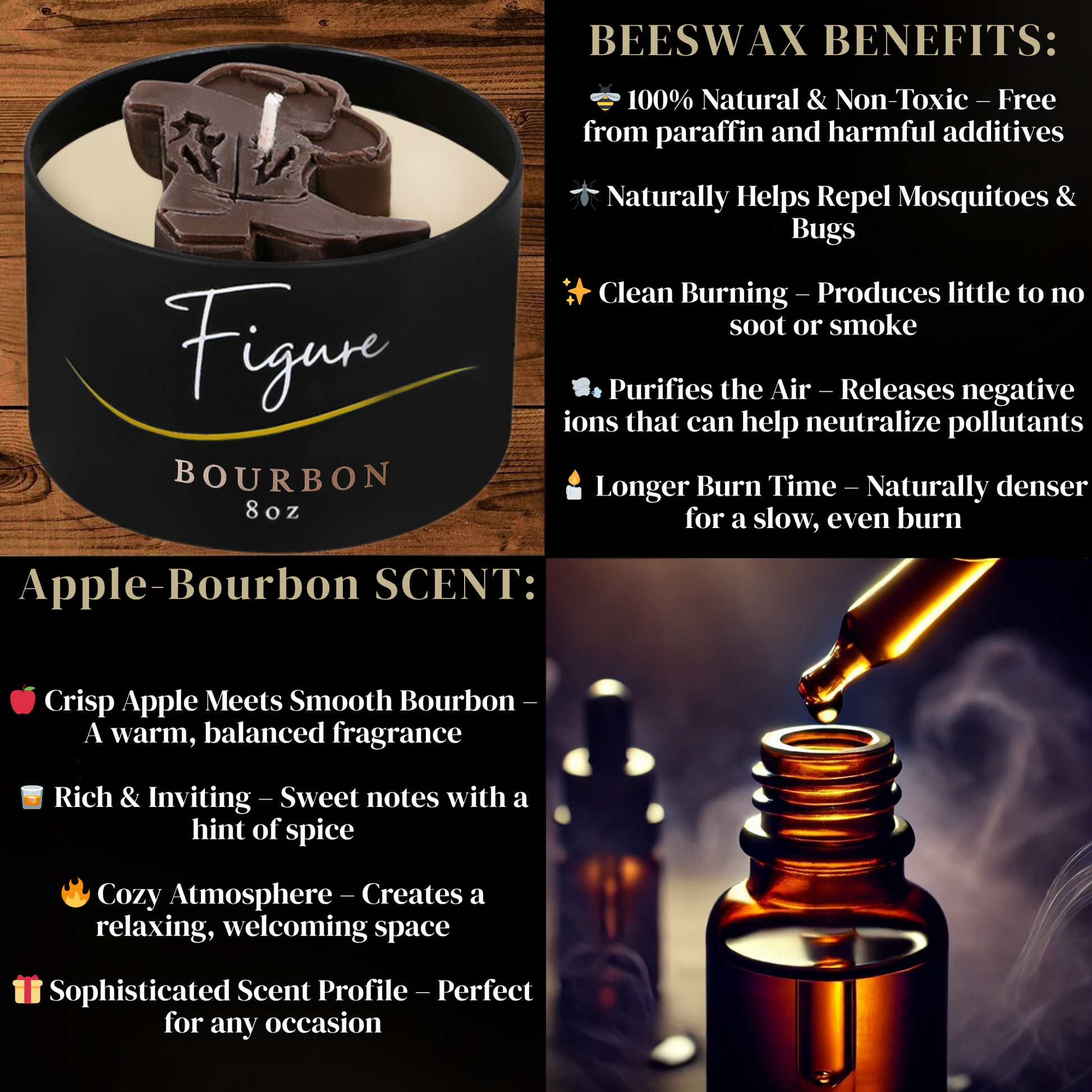 Available in Bourbon, Eucalyptus, Lavender, and Coffee Bean